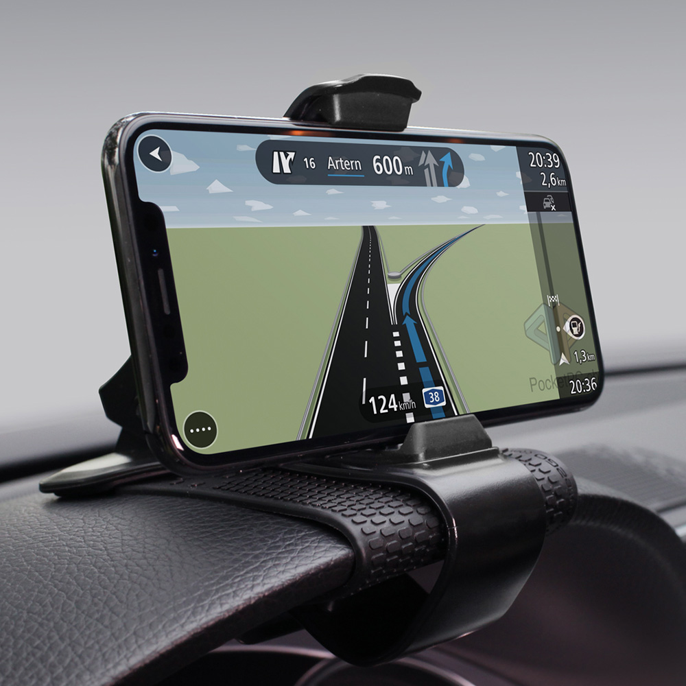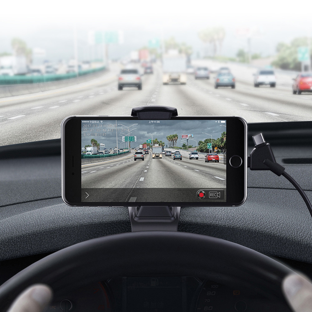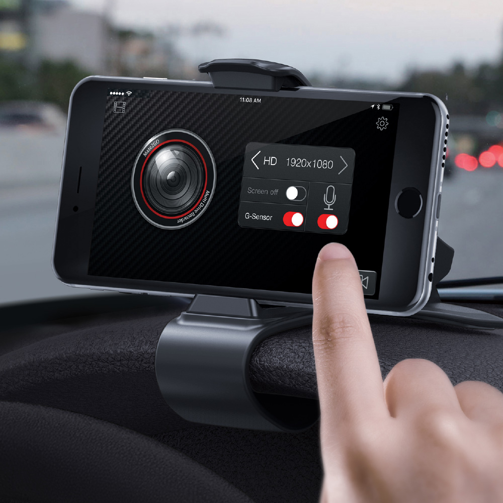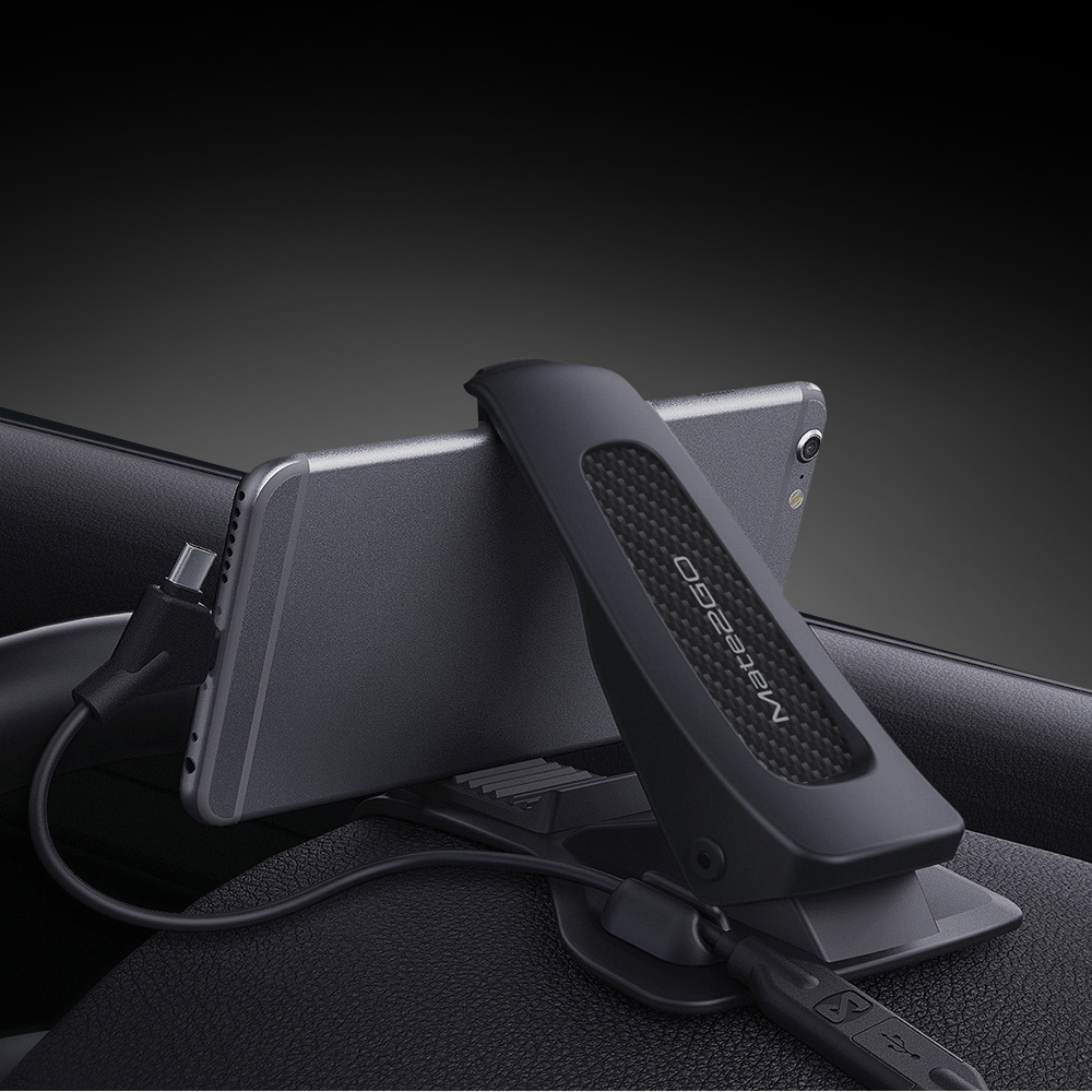 Generally speaking, this is an innovative car product designed to improve driving safety. The design of Mate2GO HUD style car phone mount is inspired by the head-up displays for cars. The phone holder will hold your cellphone on the dashboard right in front of your eyes, so that you can view your cellphone screen in a Head-up way. This way, you can drive without having to take your eyes off the road to check you phones. The crocodile-shape elastic clamp can not only firmly hold the cellphone but also enable the driver to put in or take off the cellphone with one hand, so that the driver will drive safer. Except for the excellent functional performance , its elegant appearance with textured surface in matte black makes the holder a great interior decoration which perfectly integrates with the car dashboard.