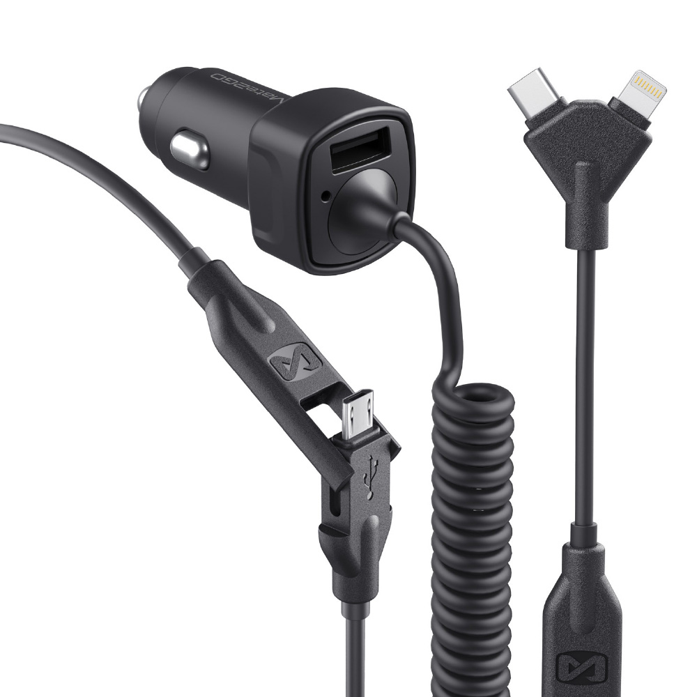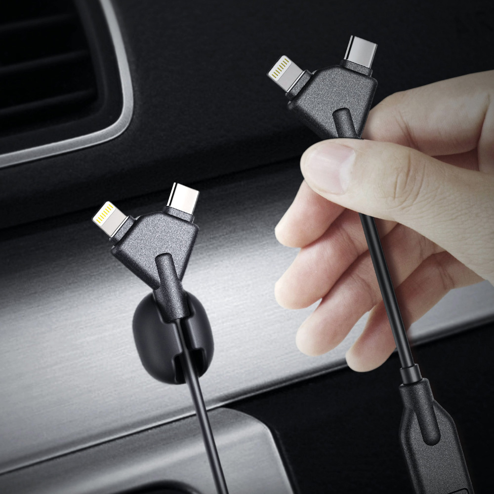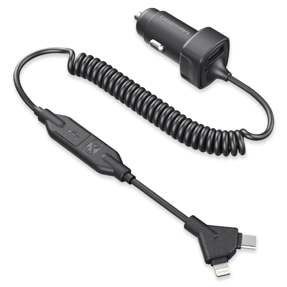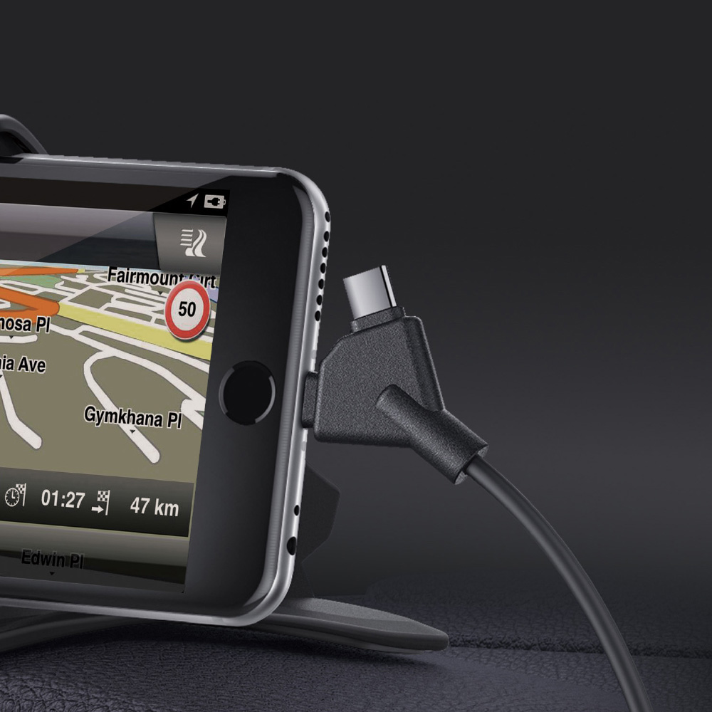 Integrated charging line, charging plug with 1.5 meters spring cable.3 in 1 car charging plug, Apple, Android three mobile phone charging plugs into one.Intelligent safety protection chip, automatic control of output power, prevention of voltage instability, real-time control of temperature, safety and non-heating, short circuit intelligent power cut and other safety protection design.